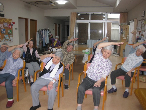 毎月様々なリモート体操が行われます。体操の時間をご利用者様は楽しみにしており、終わった後も「こんな感じの体操だったよ」と職員に教えてくれます。