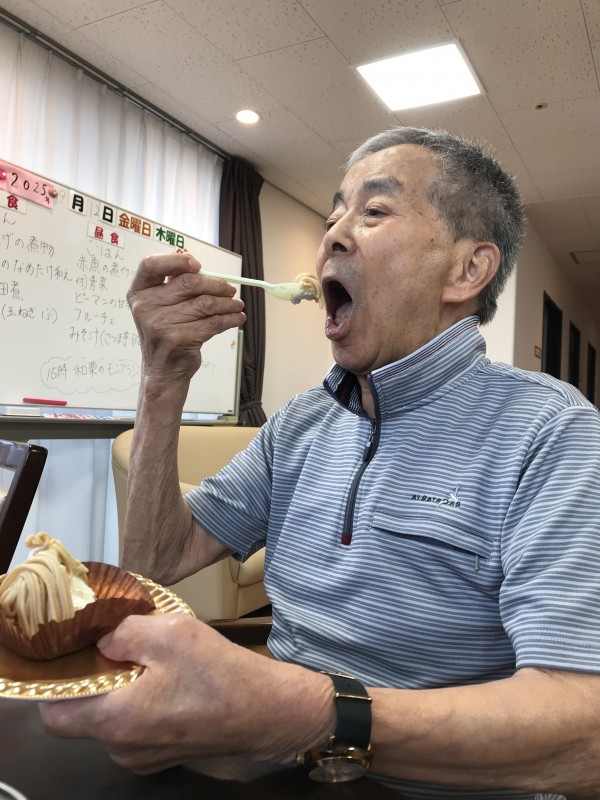 先日、おやつに秋の味覚「モンブラン」が出ました。