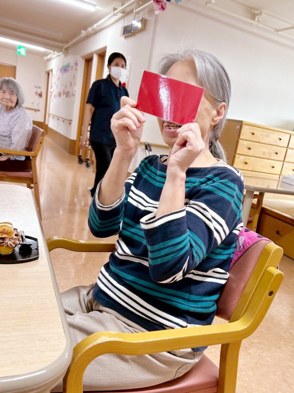 恥ずかしがり屋のK様は、カードでお顔を隠し