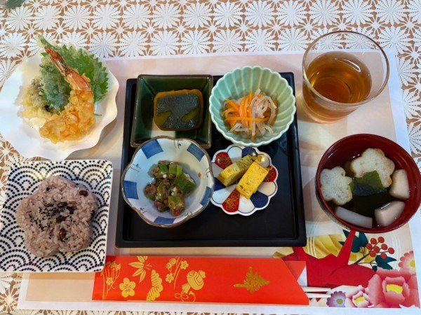 天ぷらに御赤飯。お刺身に御赤飯。それぞれごちそうが並びます。