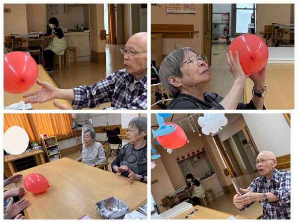 赤い風船をぽんぽんと打ち合いながら真剣にそして笑顔もこぼれたりと楽しい風船バレーで体を動かされました(*'▽')