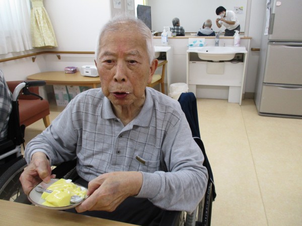 いつものおやつの後に、職員がプリンを買ってきてくれました♪