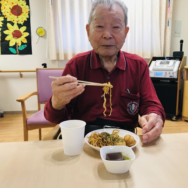 今年の敬老会では、たこ焼き、焼きそば、チョコバナナ、水ようかん、ぶどうゼリーをご用意しました♡