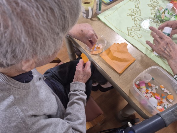私たちの事業所では、定期的に季節のちぎり絵制作をしています。