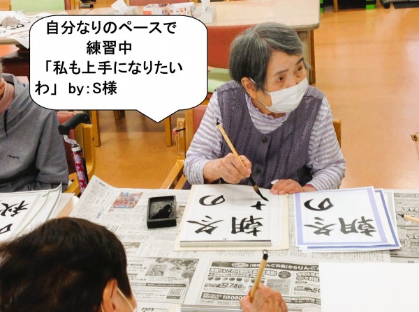 月1回の書道を楽しみにされている方もたくさんおられ、皆様頑張って良い作品を作られていました!