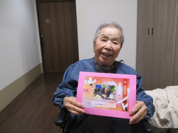先日、2階フロアで敬老の日の記念で贈らせていただいたメッセージカードを持って記念撮影をしましたので、その時の様子をお伝えします!