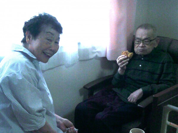 奥様が来られました( ^ω^)・・・ 照れながらお饅頭を召し上がられています(^0_0^)