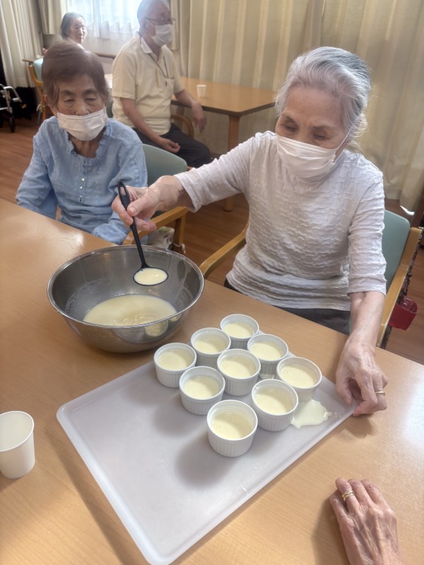 今日はおやつに、みんなでプリンを作りました(о´∀`о)