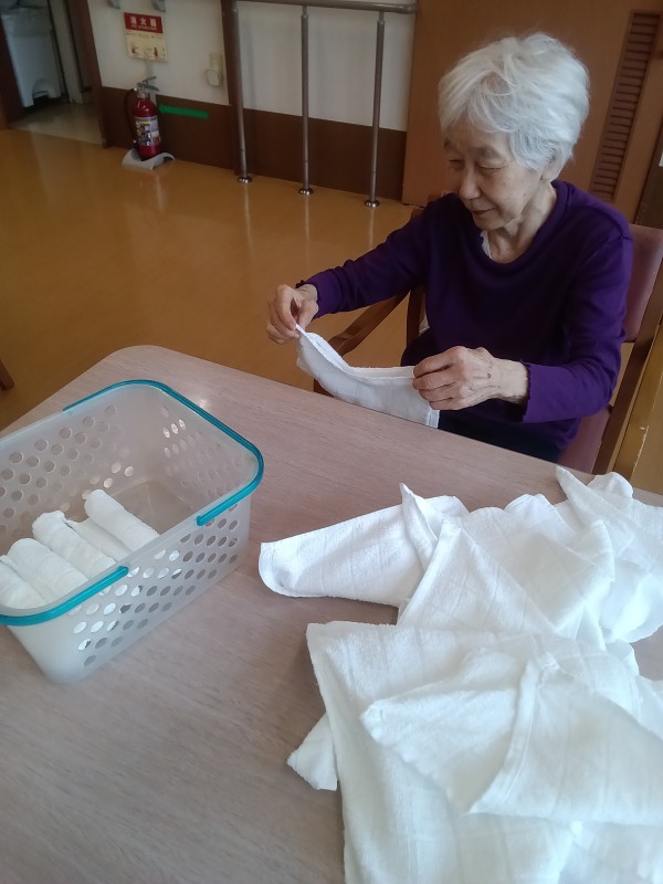 お声掛けし、おしぼりを丸めるのをお願いしたところ「いいよー」
