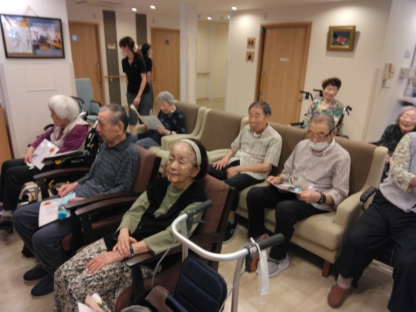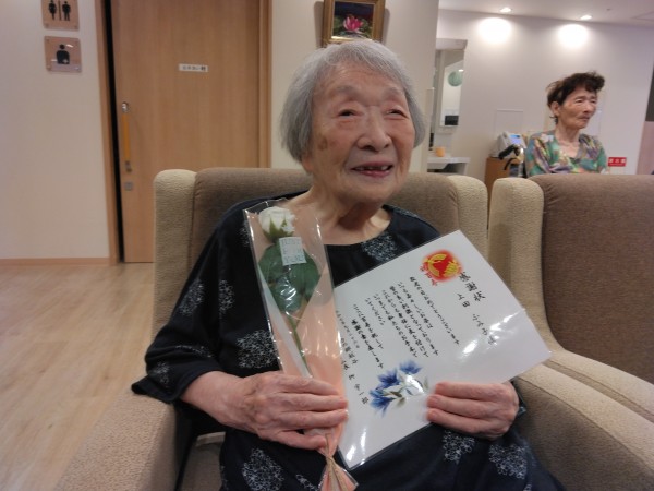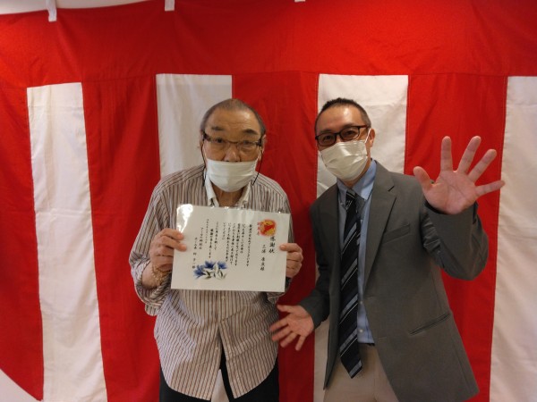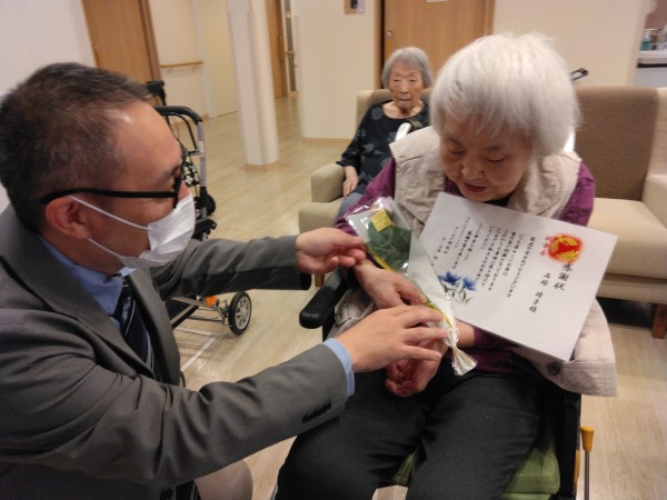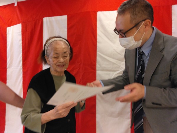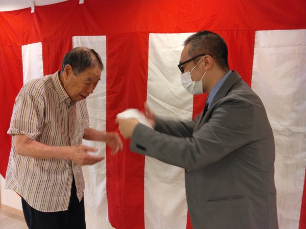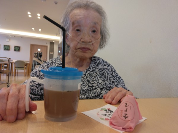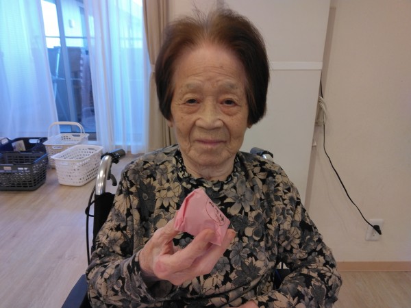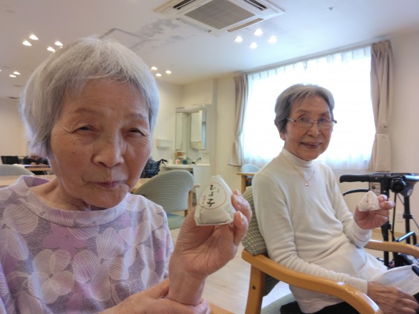 おやつには紅白仕様になっている「銘菓ひよこ」を美味しい緑茶と召し上がっていただきました