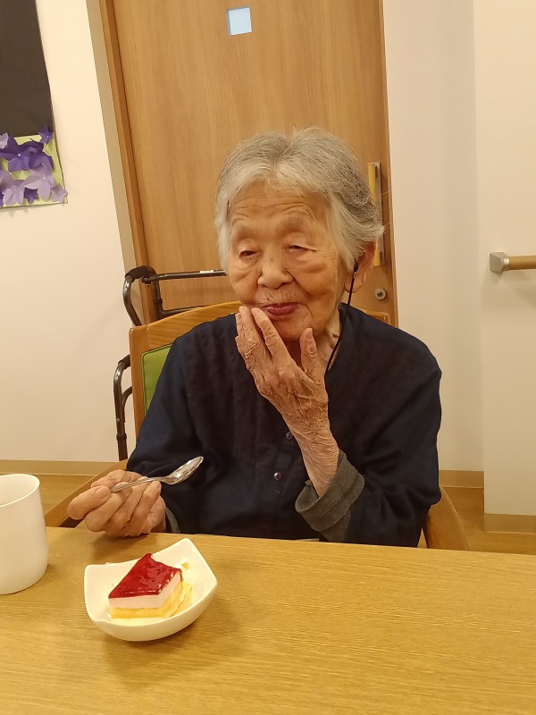 敬老の日をお祝いするのにぴったりなケーキを、おやつの時間にお出しいたしました♪
