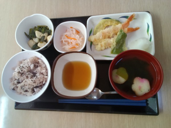 昼食はお赤飯と天ぷらでした(*´▽`*)
