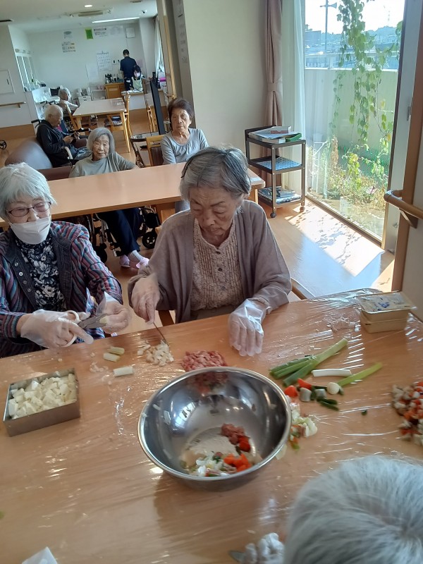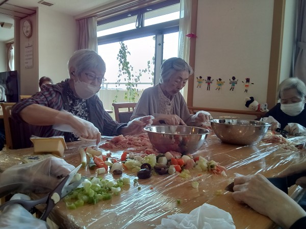 お肉やお野菜、豆腐等、材料を皆様に切っていただきます♪