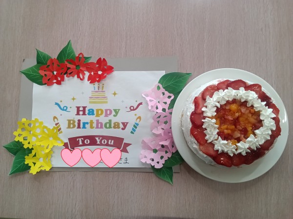 皆様、手作りバースデーケーキでお祝いをいたしました♪