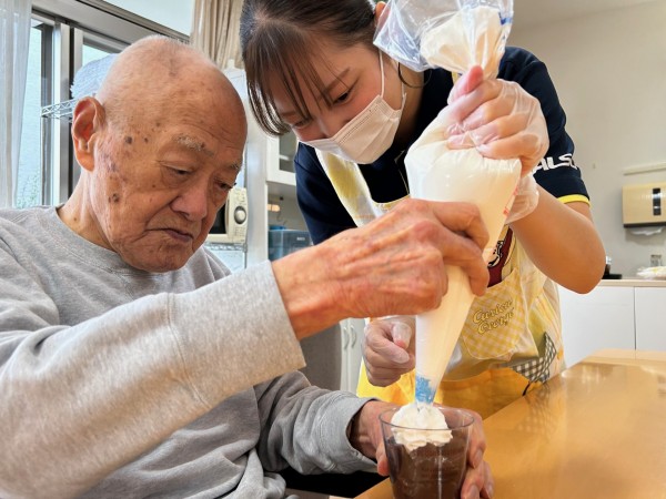 みんなでスイーツを作り、米寿・卒寿・長寿の表彰をし、夜は花火と豪華三部構成です