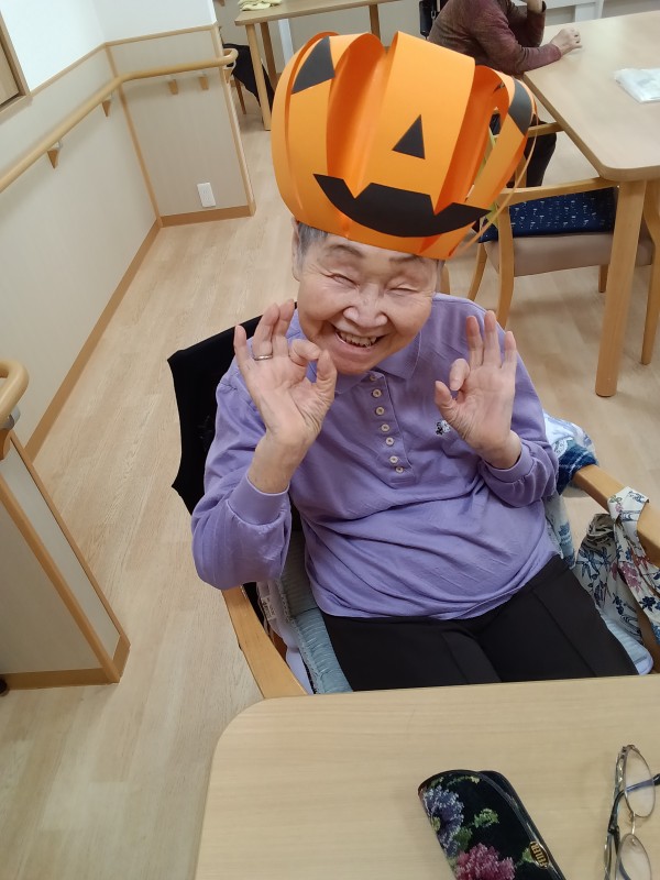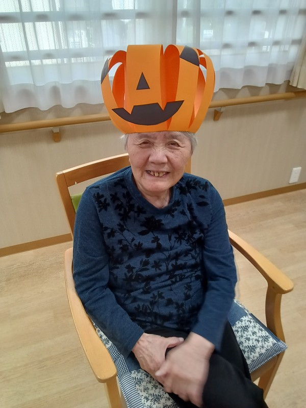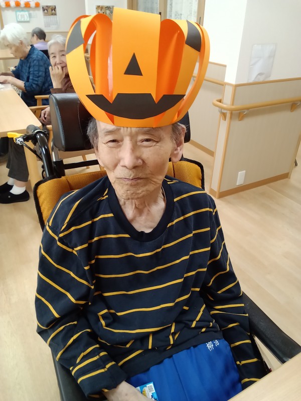 余り入居者様にはなじみの薄いハロウィンですが、スタッフが作った帽子を「被りたい!」と皆様楽しそうに被って下さいました^^