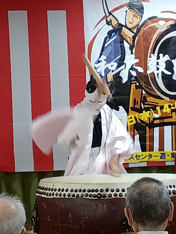 一歩会さんリーダーの横笛演奏に合わせて、和太鼓の小川さんが歌を歌いました♪