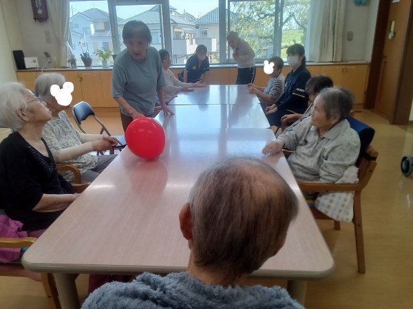 今日はAフロアにBフロアの皆様が集まり一緒に風船バレーを楽しみました(^^♪