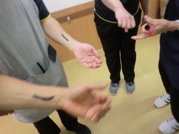 この腕に書いた油性マジックがなんと!ものの3分程湯につかることでまっさらに消えてしまいました!