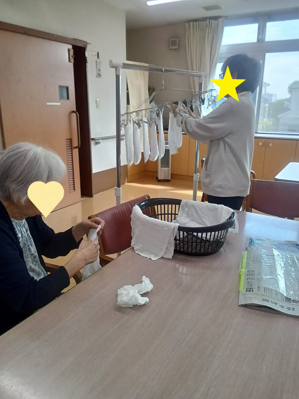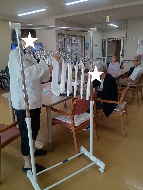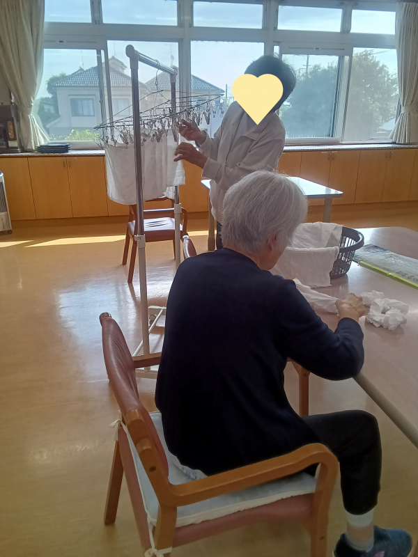 朝食後に洗濯が終わったのでお手伝いをお願いしました(*'▽')ノ