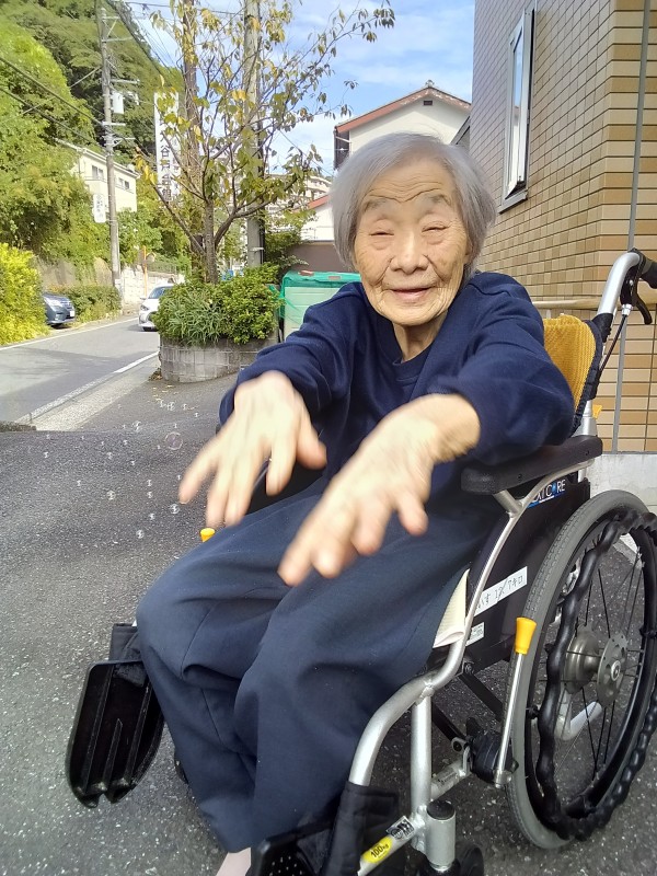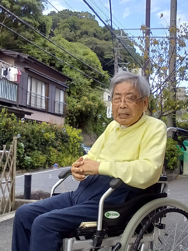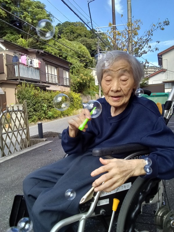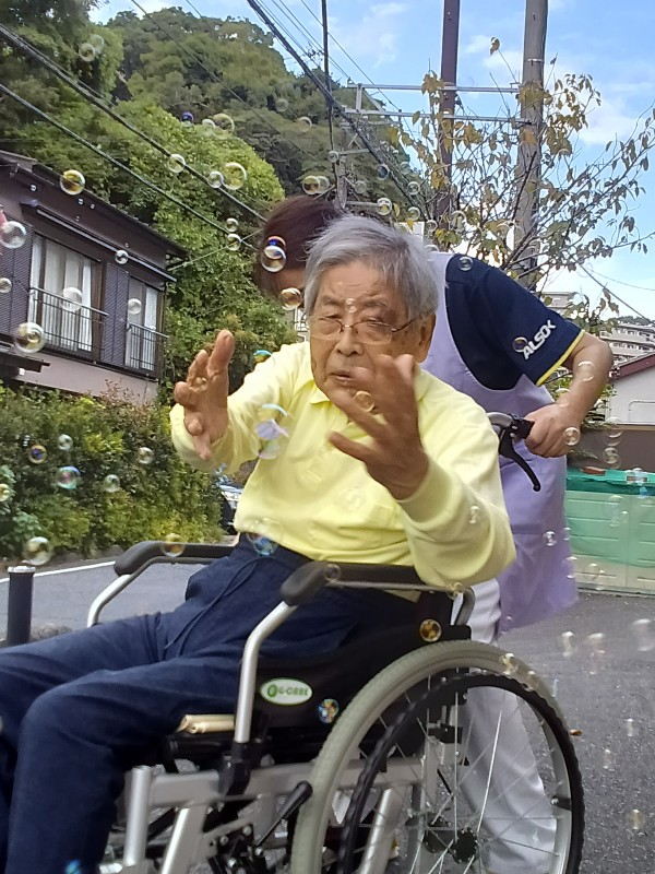 外気浴をかねてお散歩後に昔懐かしの「シャボン玉」