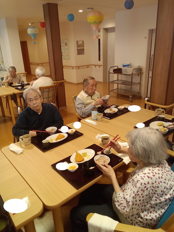 笑顔溢れる食事風景です。これからも、皆様が安心して笑顔でお過ごしいただけますよう、職員一同、心を込めてお手伝いしてまいります。これからも健やかに、穏やかに毎日をお過ごしください。