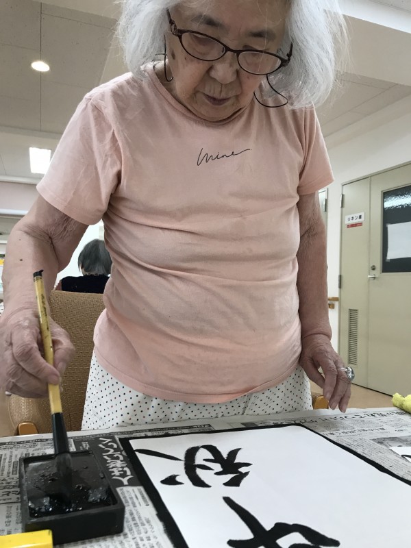 文字の大きさ、角度、半紙の使い方。