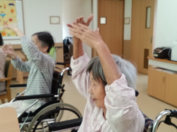 リモートの体操教室よりも直接先生の声を聴き、音楽に合わせて体を動かす事で