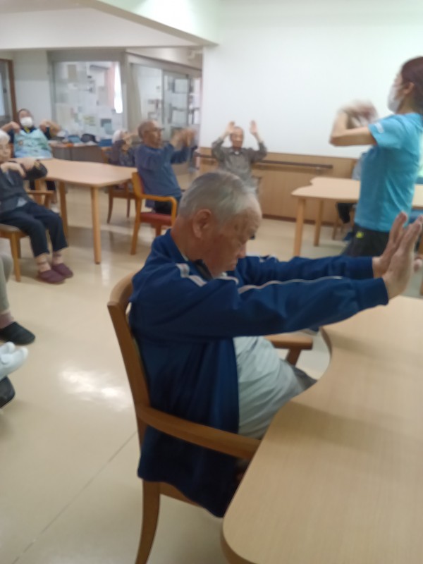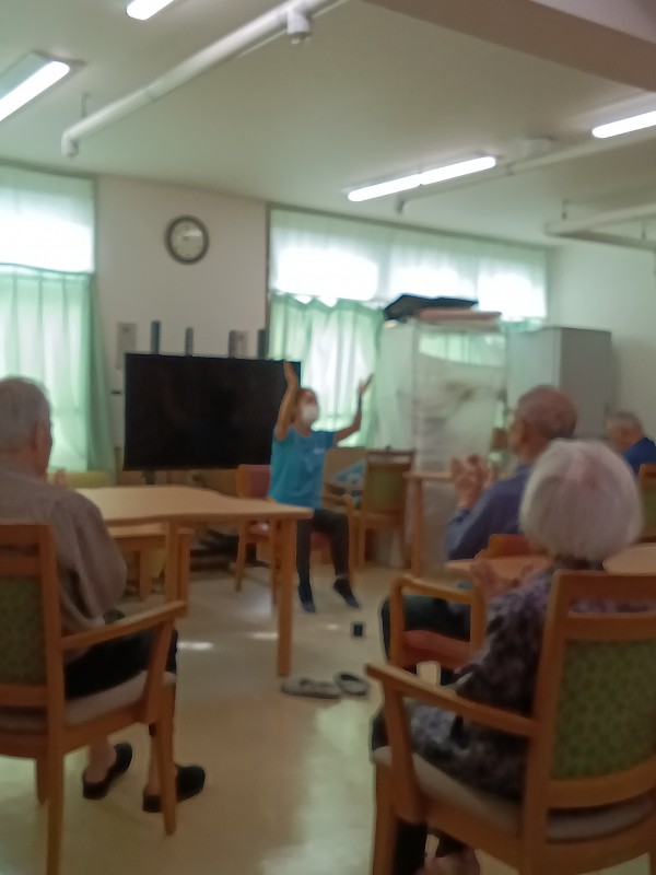 体操の先生が訪問して先生を前に体操が出来ると皆さんもとても張り切って運動が出来ます