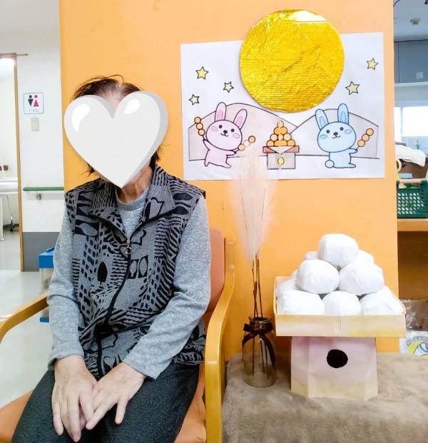 皆さんが作ってくれた、大きなお月見団子と一緒にパシャリ(´_ゝ`)‼