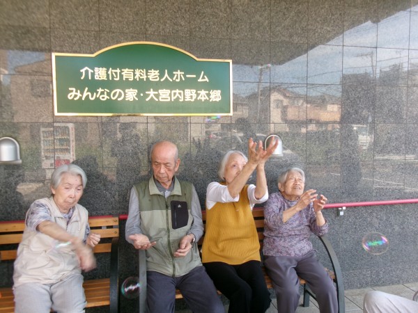 風に乗って飛んでいくシャボン玉を、手を伸ばして追いかける姿も見られ、とても和やかな時間となりました。