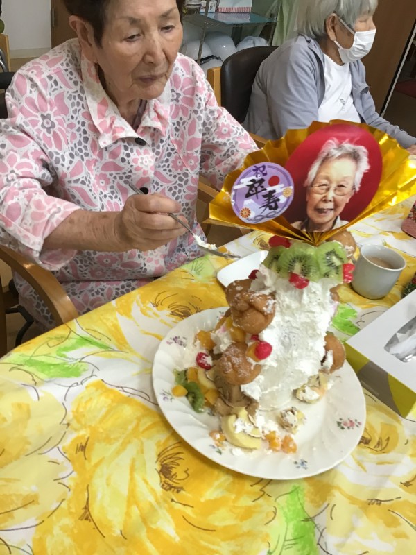 皆さんで歌をうたってお祝いした後にご自身で好きな量を取り分けて食べていただきました(*^^*)