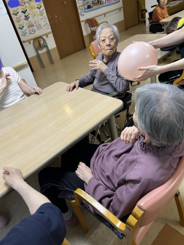 今回は1階の皆さんによる風船バレーのレクのご様子をご覧ください。