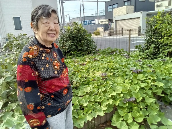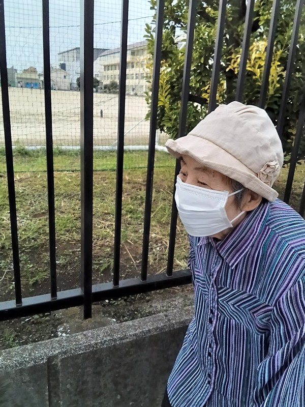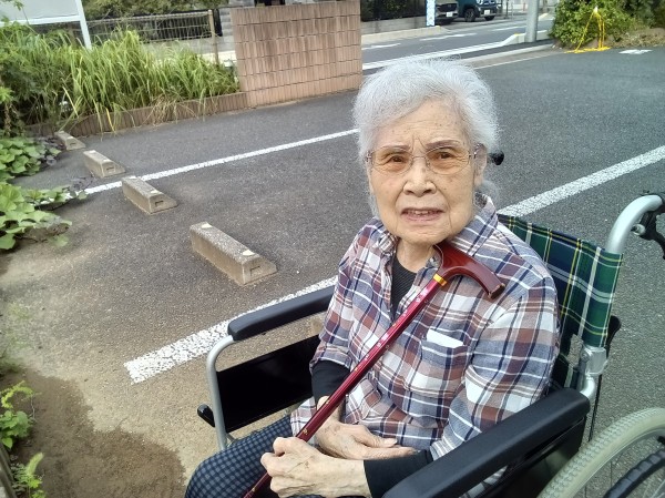 散歩と外気浴の途中で菜園の様子を見ていただきました。