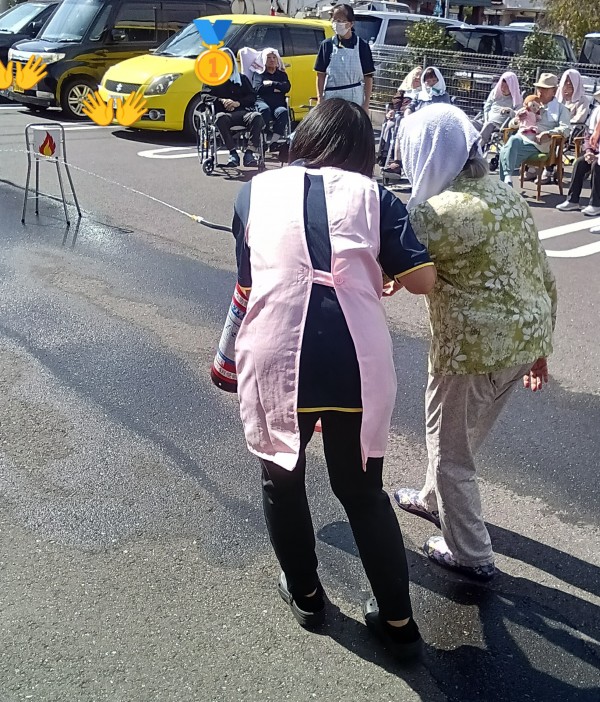 全員無事避難完了しました。今度は消化器の使い方の実践です。
