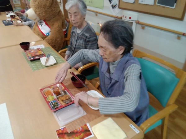 こんにちは GHみんなの家川崎新百合ヶ丘です 秋のお弁当を楽しまれた2階のご利用者様のご様子です