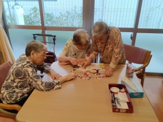 難しいパズルを3人のご利用者様が協力し合って行っていました^^