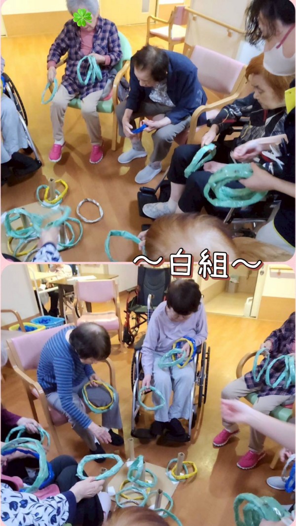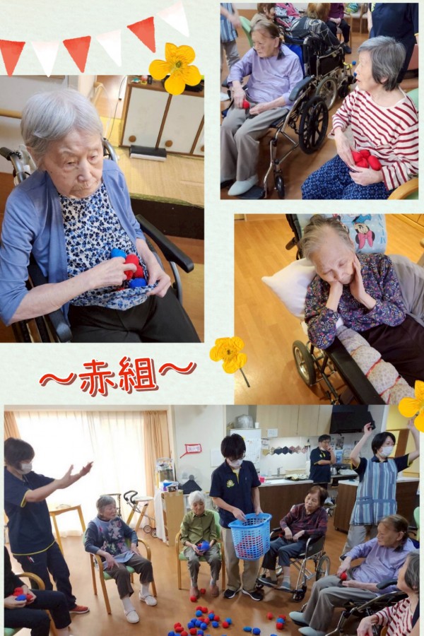 赤組・白組とも風船を落とさぬよう力を合わせ声掛けをしながらのラリー( *´艸`)