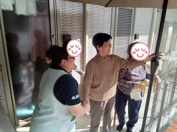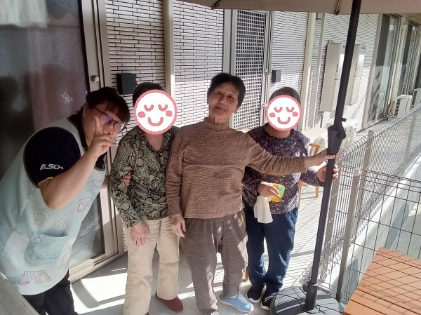 「ちょうどいい暖かさでいいですね」「風が気持ち良くていいですね」「ここは静かで過ごしやすいですね」と沢山の会話が生まれた日向ぼっこ♪