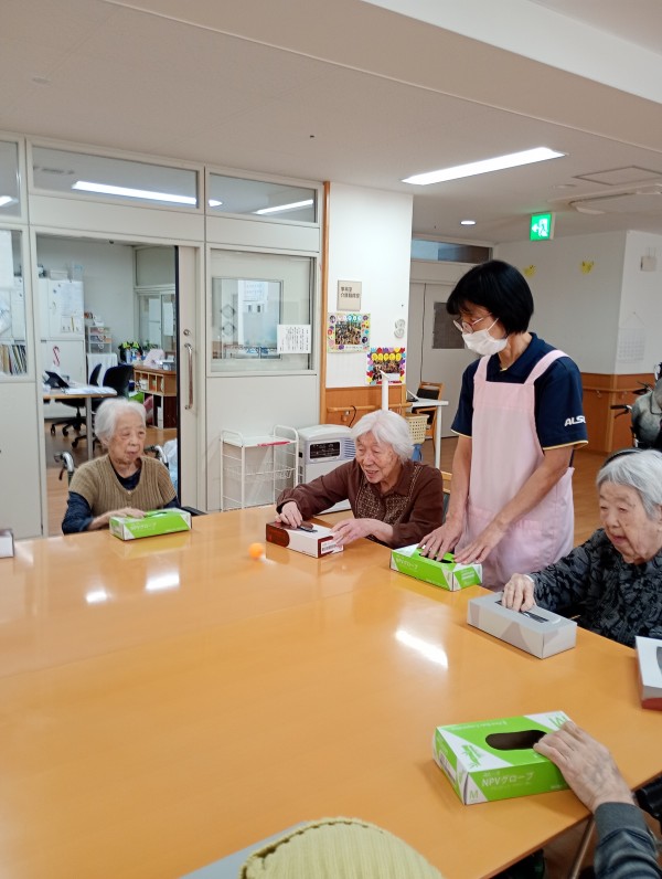 空箱をリサイクルして机ホッケーを行いました(*‘ω‘ *)