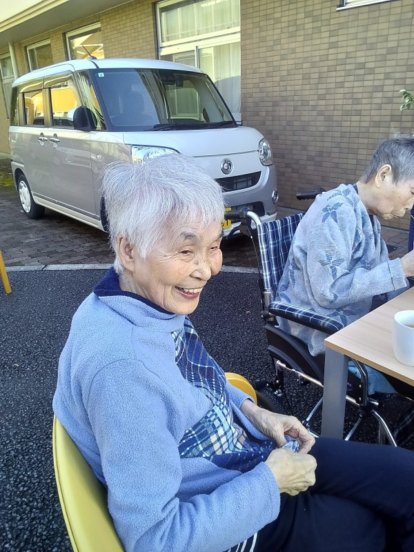 中庭に皆さんの歌声とギターの音が響き渡り楽しいおやつタイムとなりました♬