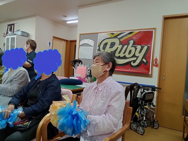 ご利用者様もポンポンを手に持ち、楽しく踊りました(^^♪