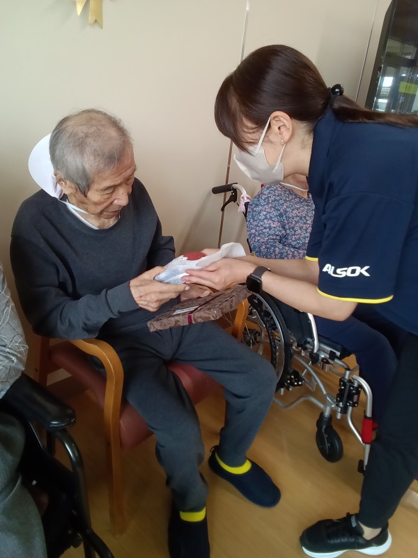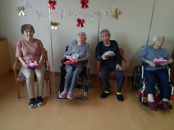 こんにちは。。。10月にお誕生日をお迎えになりました。ご入居者様のお誕生日会をお送りいたします。スタッフの手づくりのカード、プレゼントをお渡しさせて頂きました。普段あまり話されないご入居者様が本当に嬉しかったのか、プレゼントをお渡したとたん、たても興奮され多弁になられたのが印象的でした。皆様とても素敵な笑顔でこの1年・・・笑顔溢れる1年でありますように❤