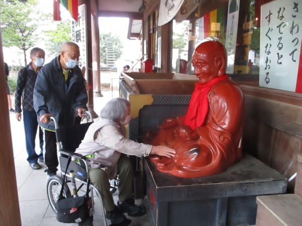 おびんずる様は、自分の体の悪いところと同じ部分をなでると良くなるといわれる仏様です。皆様、それぞれに「ここが痛いから」「元気になりますように」と願いを込めて優しくなでておられました。