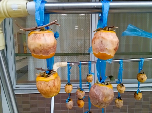 4.5日ごとに揉んでいくと中が柔らかくなって渋みが抜け、甘味の強い干し柿になると・・・( ..)φメモメモ