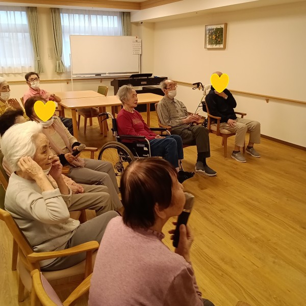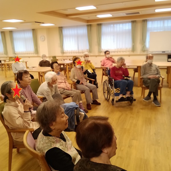 1階~3階までの利用者様がほぼ集まりカラオケをしました。。