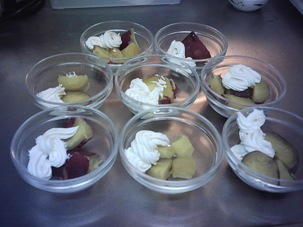 1階で秋の味覚のサツマイモをふかしてクリームをトッピングで召し上がりました
