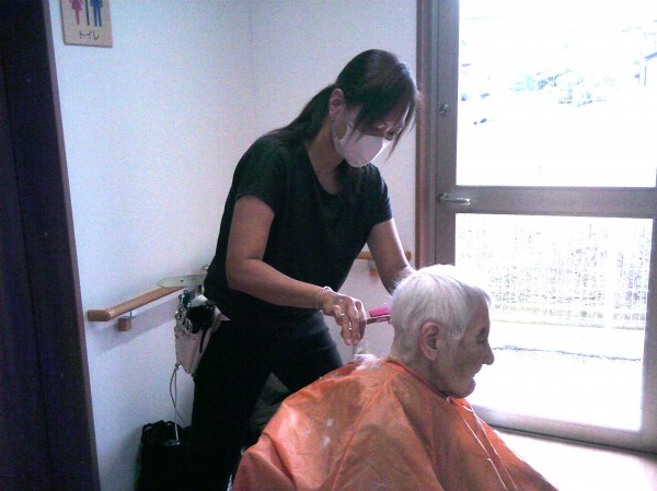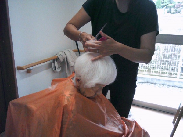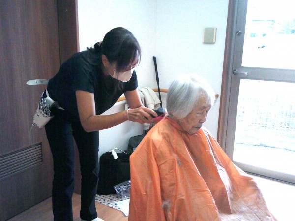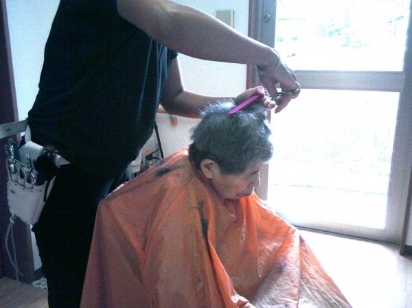今日は1階で訪問理美容の方による髪の毛をカットしていただきました。 そのご様子をお知らせいたします!!