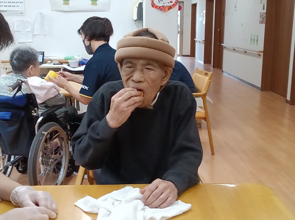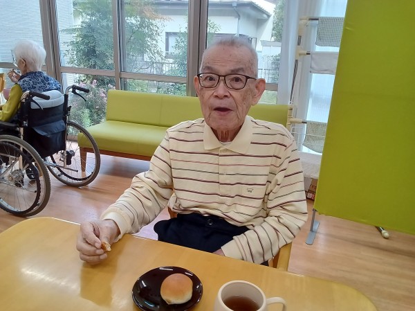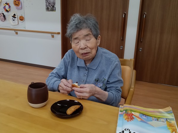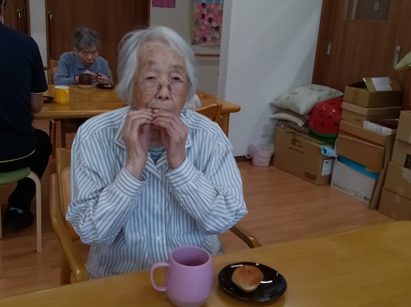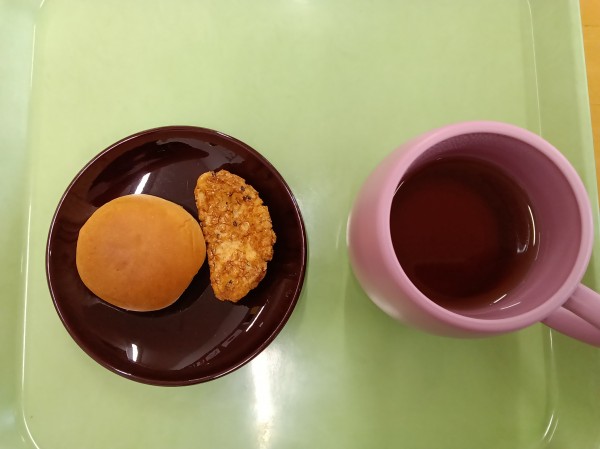 今日はおやつにあんパンとお煎餅です( ^ω^)・・・。  召し上がられているご様子をお知らせいたします!!