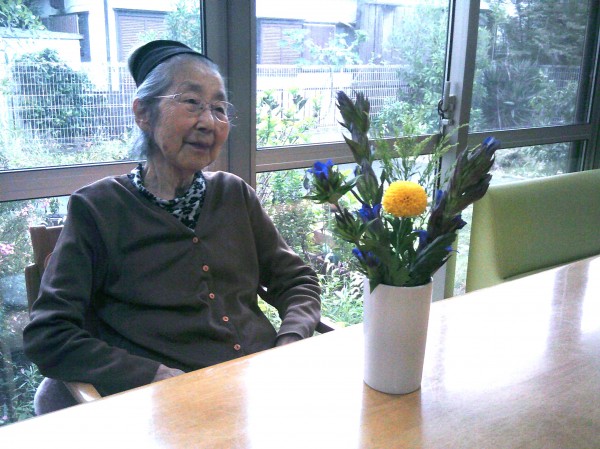 綺麗ね! りんどうに黄色い菊の花? ずーっと見て楽しまれておりました(*^_^*)